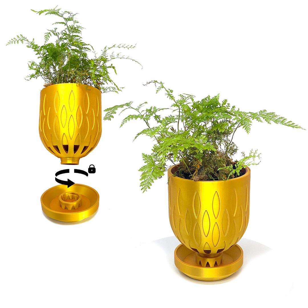 This version is designed for tabletop use with a stable twist lock base that also functions as the drip tray, making it ideal for shelves, windowsills, desks, plant stands,Ā and countertops.