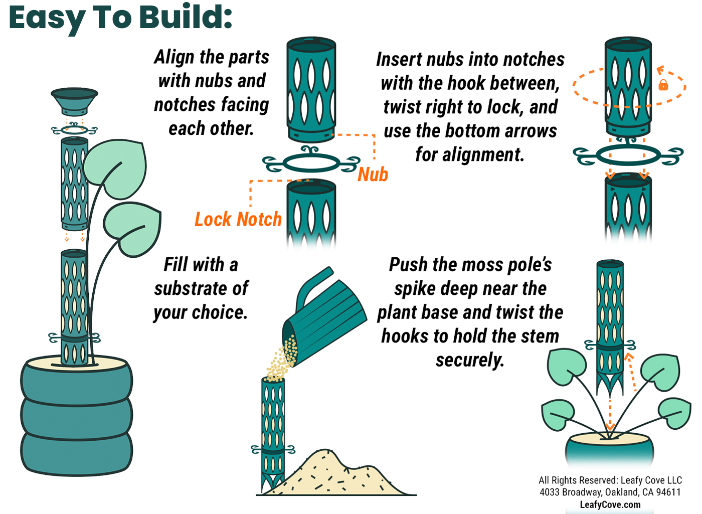 🌿 Versatile Substrate Compatibility: The Modular Moss Pole System is designed to hold a wide range of substrates, ensuring that your plants receive the optimal support and moisture they need to thrive.