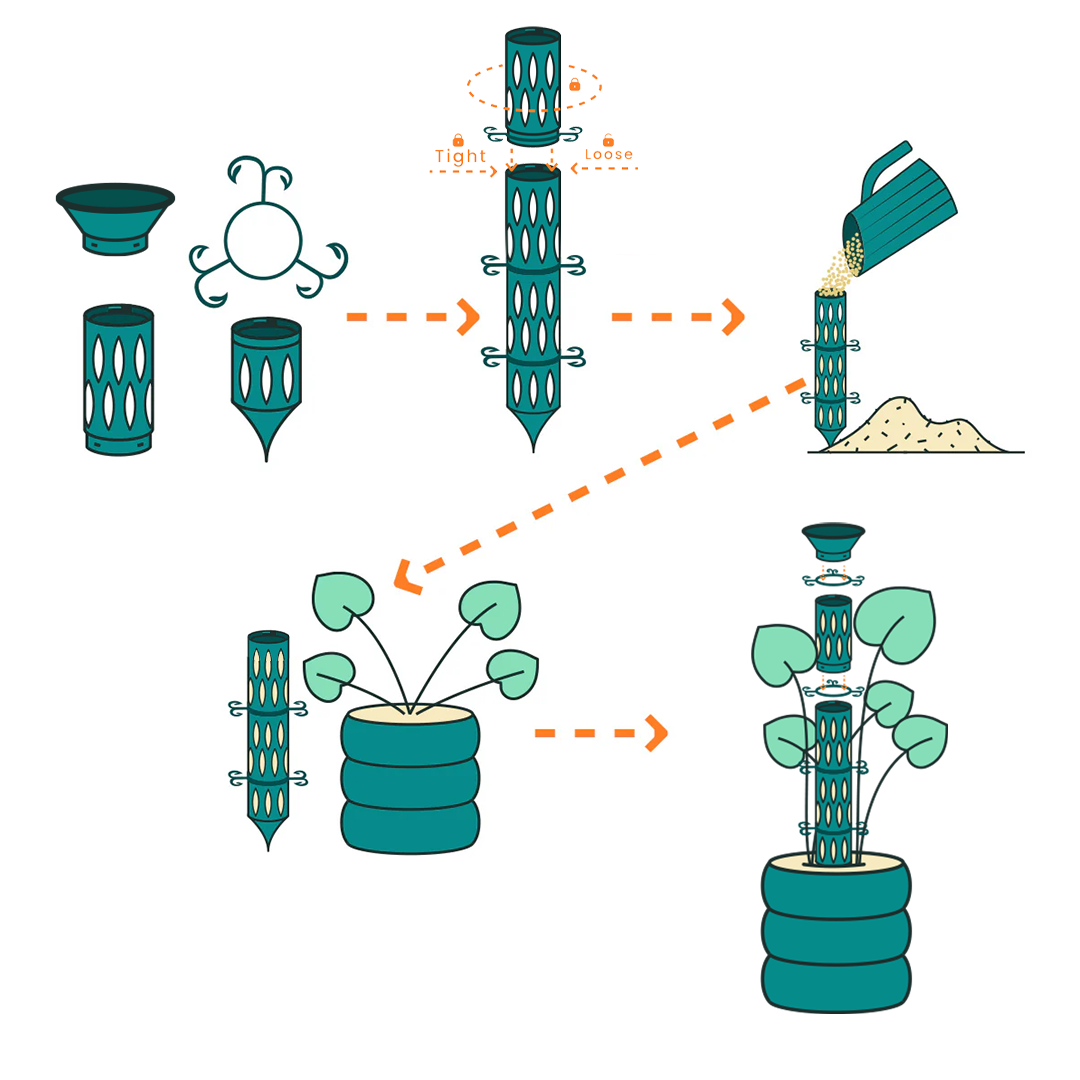 🌿 Twist-Lock Mechanism: Each body, top cap, and soil spike easily twist-lock together, providing a secure feeling and allowing you to effortlessly add parts as your plants grow.