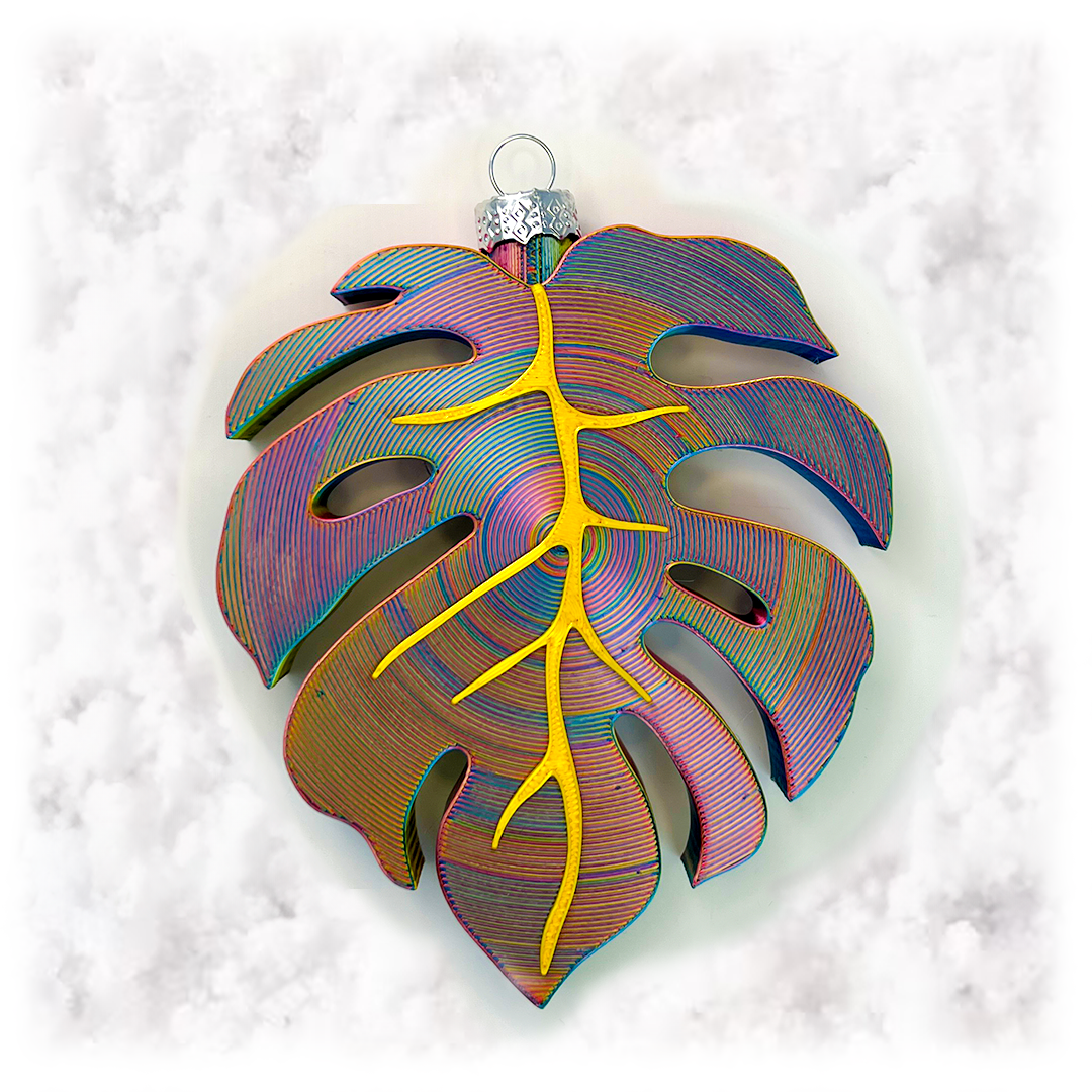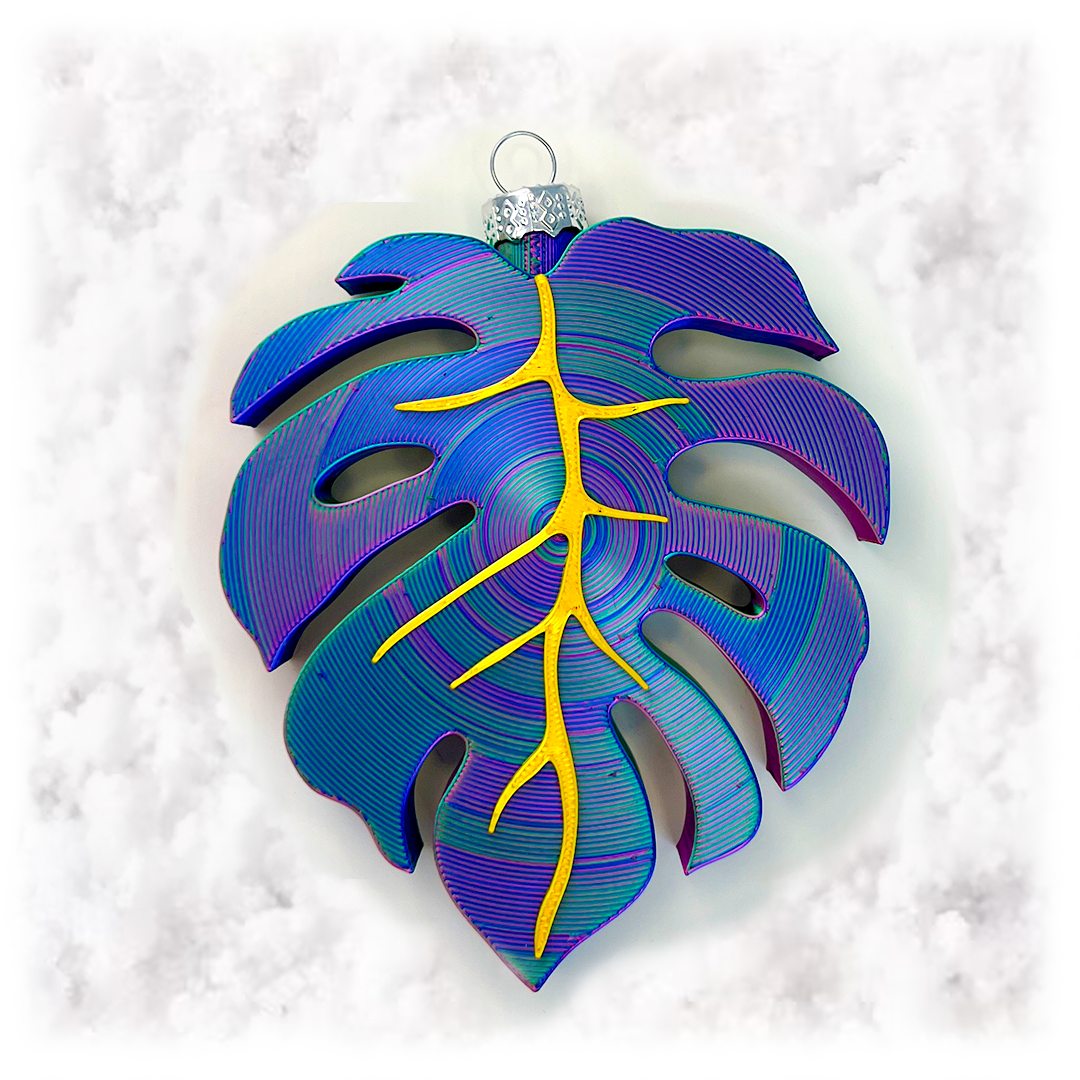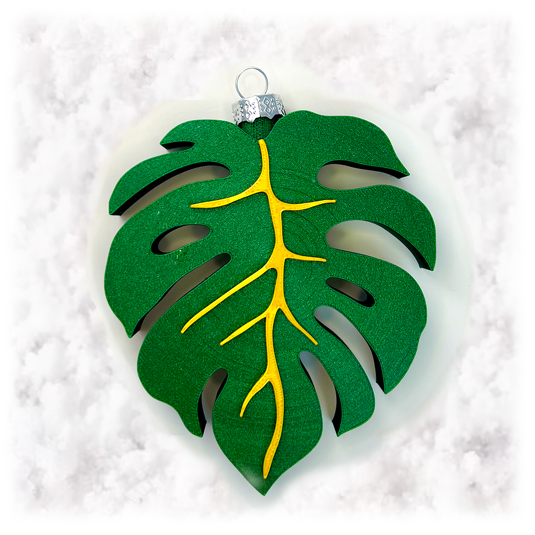 Created by Leafy Cove’s design team and 3D printed in California 🇺🇸 using sustainable materials, this one-of-a-kind ornament showcases our passion for merging nature with festive decor. Measuring 4 inches tall (10 cm), 3.5 inches wide (9 cm), and 0.5 inches thick (1.5 cm), it’s the perfect size to add a tropical, botanical element to your Christmas tree. 🌴