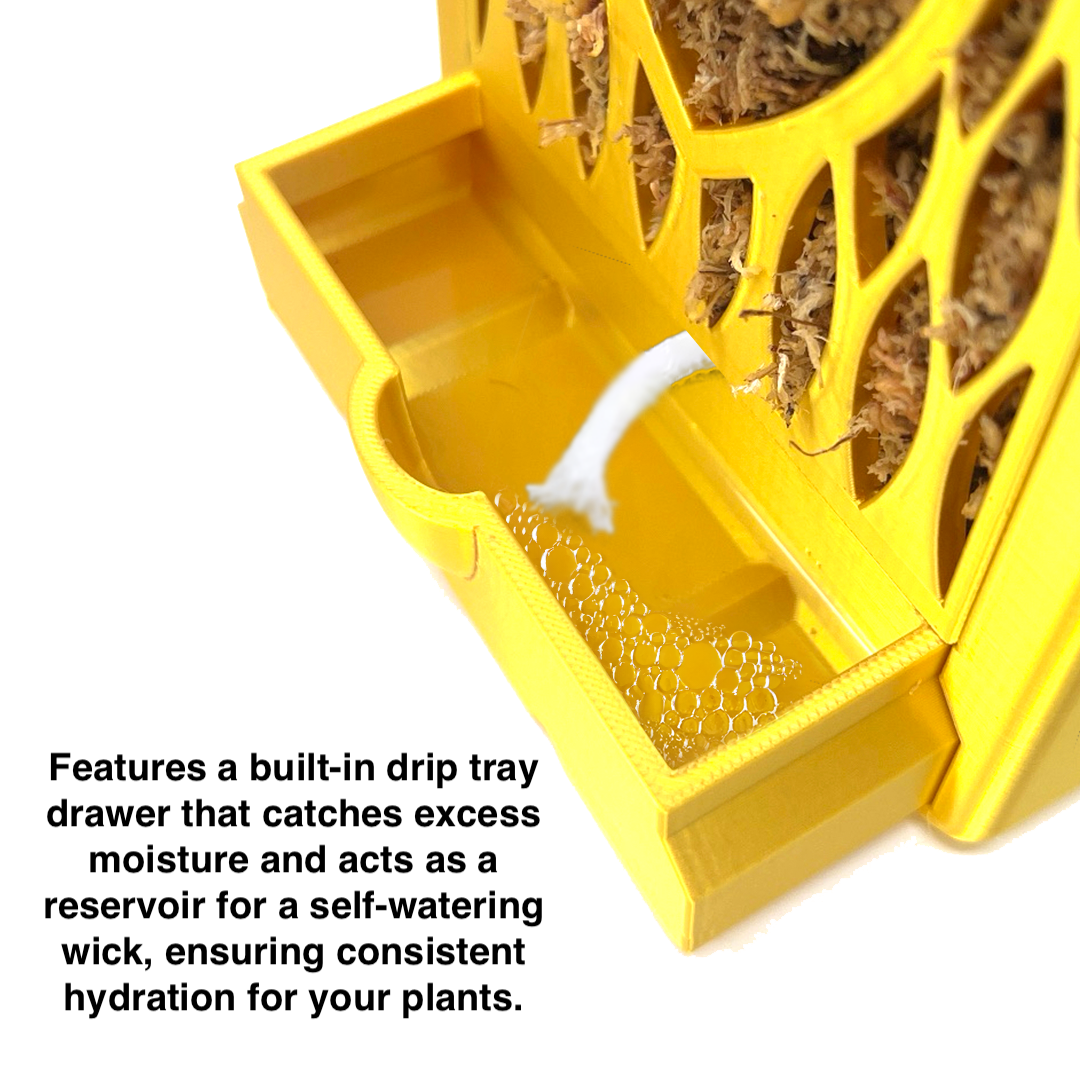 This planter includes a 12-inch (30 cm) Self-Watering Capillary Wick Cord, keeping moss or other substrates hydrated effortlessly. The wick draws moisture from the built-in drip tray, ensuring consistent water supply without overwatering. Simply insert the wick through the bottom hole and water from the trayβno more guesswork!