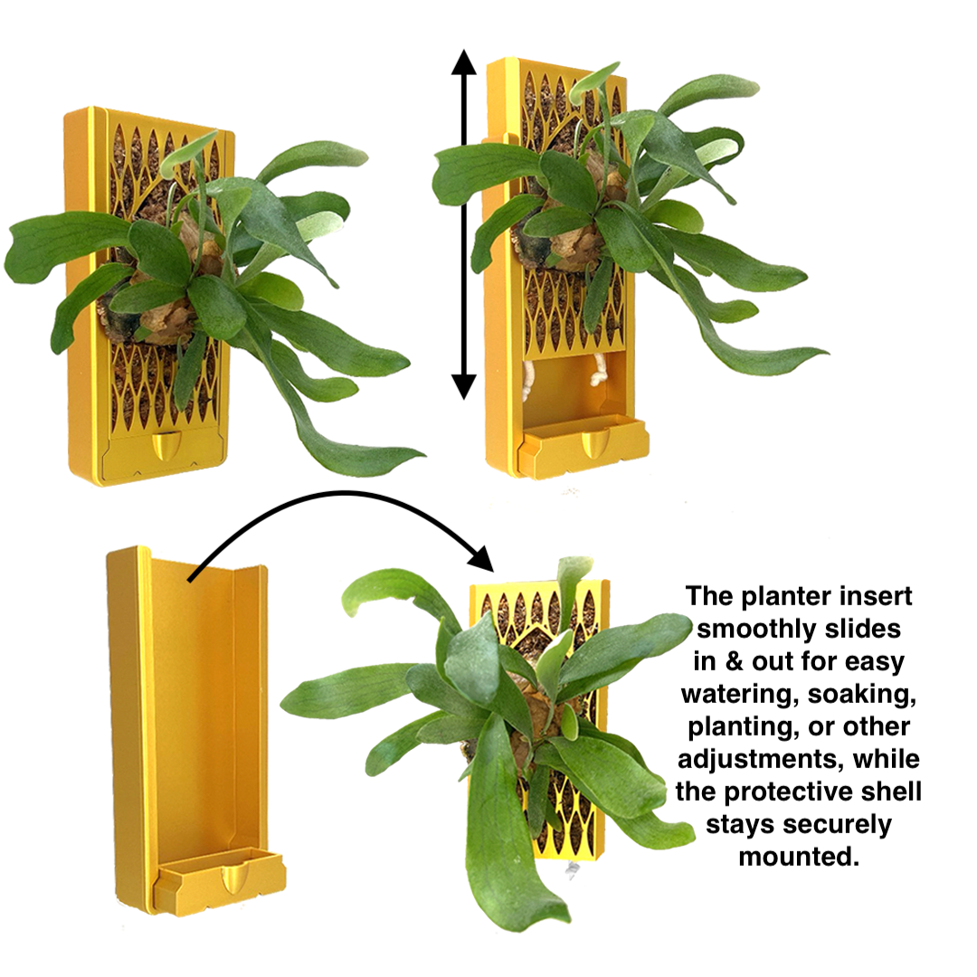 Create a thriving indoor vertical garden with our Orchid & Staghorn Fern Wall Mount Vertical Planter, the ultimate vertical wall planter and living wall art. Designed for easy, mess-free installation, this renter-friendly, no-drill option lets you showcase orchids, staghorns, and other vertical plants in style. Whether you're mounting an orchid or a staghorn on a moss pole, this customizable vertical plant holder ensures your plants thrive beautifully.